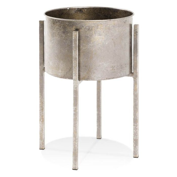 Fraaie ronde stalen bijzettafel in antiek-brons afgelakt. Het metalen bovenblad is omkeerbaar en in een handomdraai van fraaie bijzettafel naar een plantentafel of opbergtrommel te realiseren. Het onderstel is vervaardigd van sterk staal en in antiek brons gespoten.