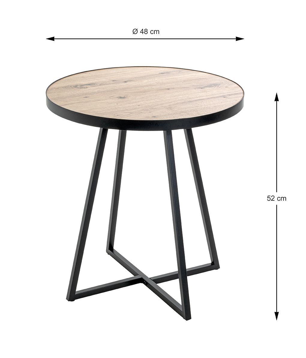 Bijzettafel| Blank Eiken decor | Zwart Staal | Industrieel | Rond| 48x52x48cm