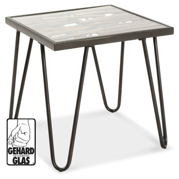 Bijzettafel Staal Oud hout latjes onder glasblad