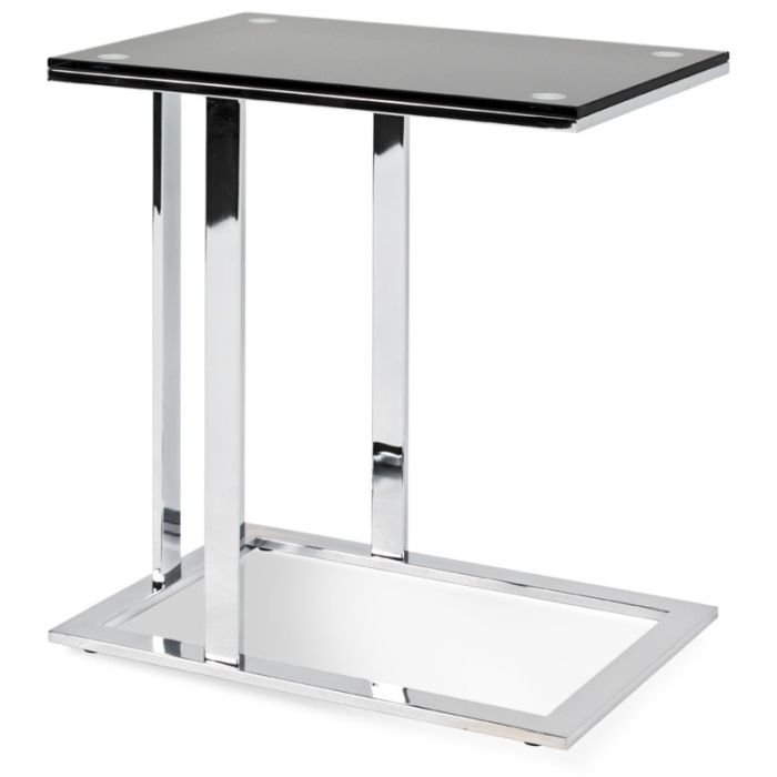 Bijzettafel zwart glas met verchroomd onderstel rechthoekig 58cm hoog