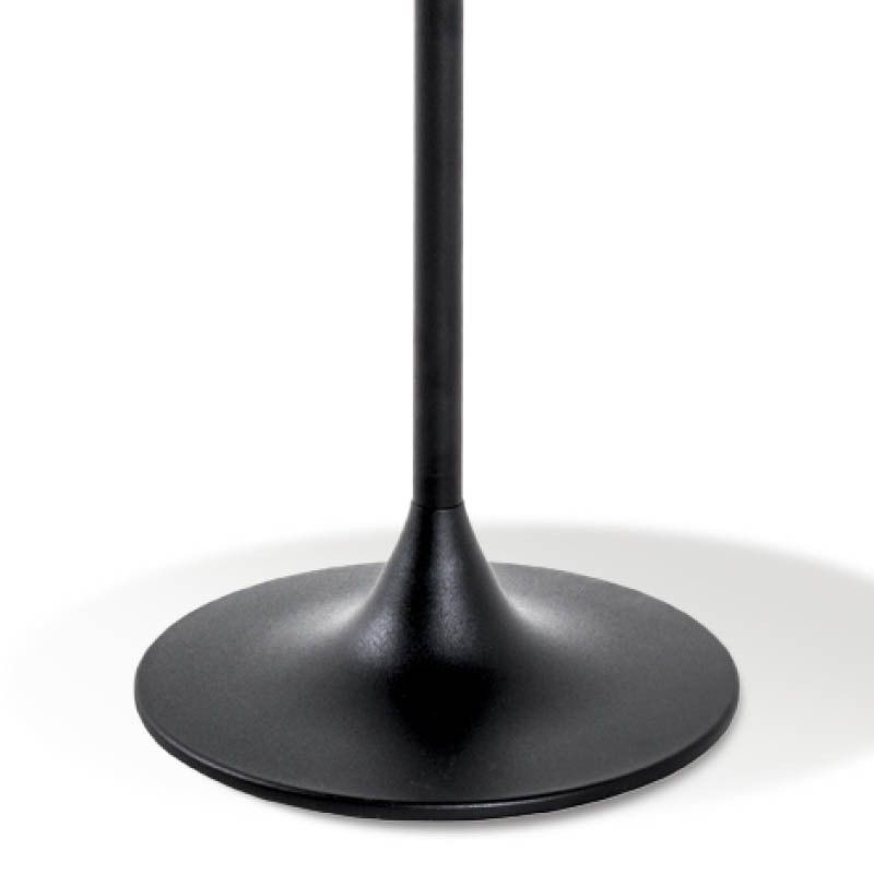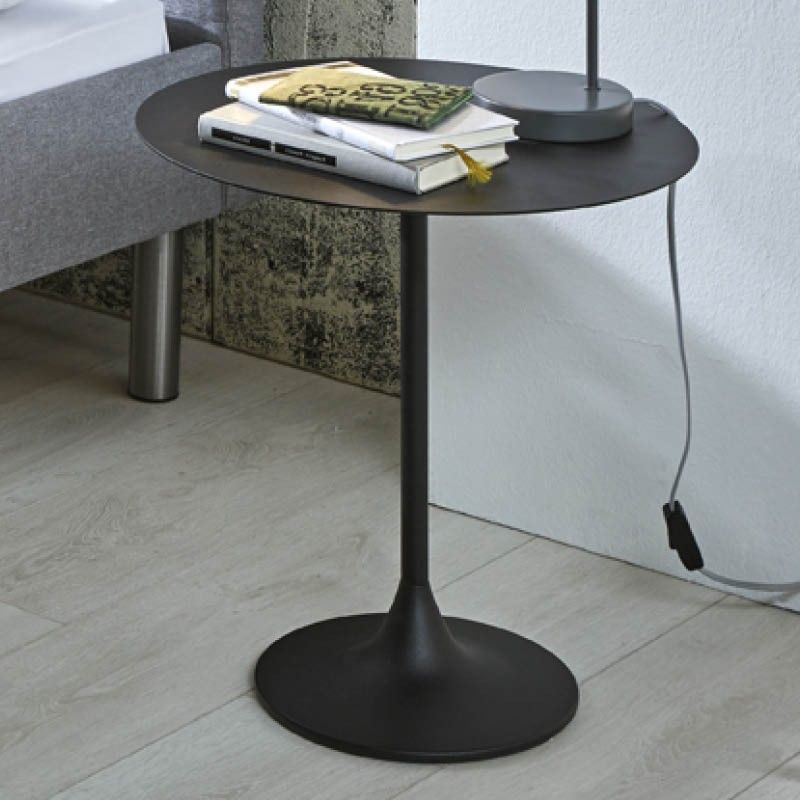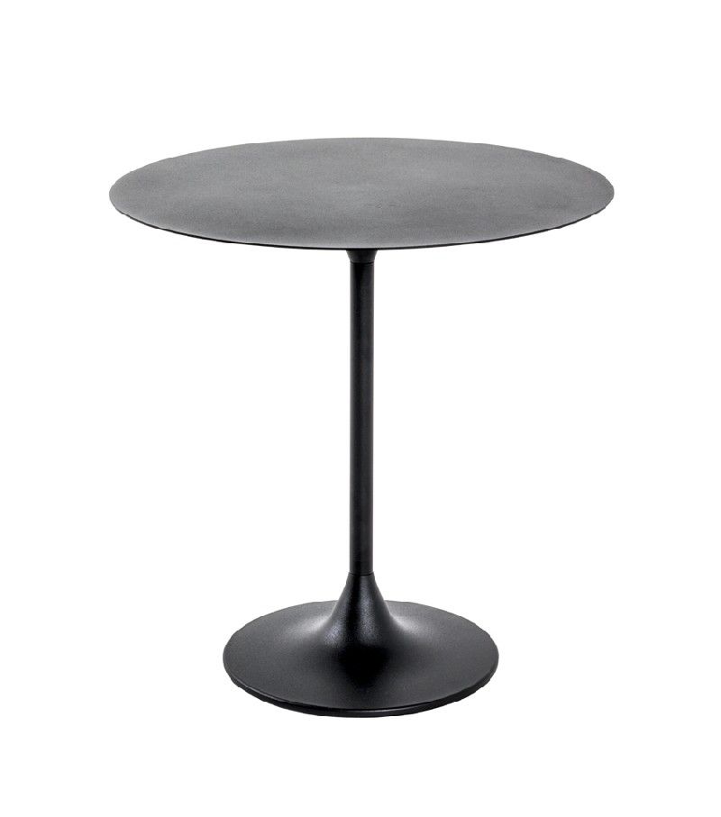 'n Schiterende massief metalen bijzettafel. De metalen sierlijke trompetvoet is in zwart gepoedercoated afgelakt Het ronde tafelblad is massief zwart staal. De verzwaarde trompetvoet wordt met 4 beschermende voetjes bijgeleverd van 5mm dik. Haar gewicht van bijna 7 kilo getuigen overtuigend van de topkwaliteit! Gewoonweg schitterende design; Onverwoestbaar en wonderlijk mooi…