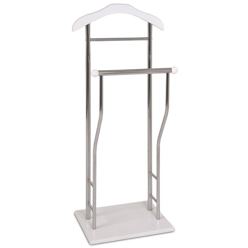Prachtige dressboy met kledingbeugel en voetplaat van MDF in Premium© hoogglans wit, stalen buizen zijn verchroomd.