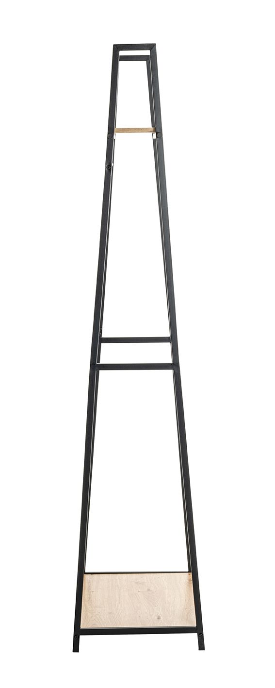 Garderobe | Kapstok | Zwart| Staal | Eiken dekor | 68x166x40cm