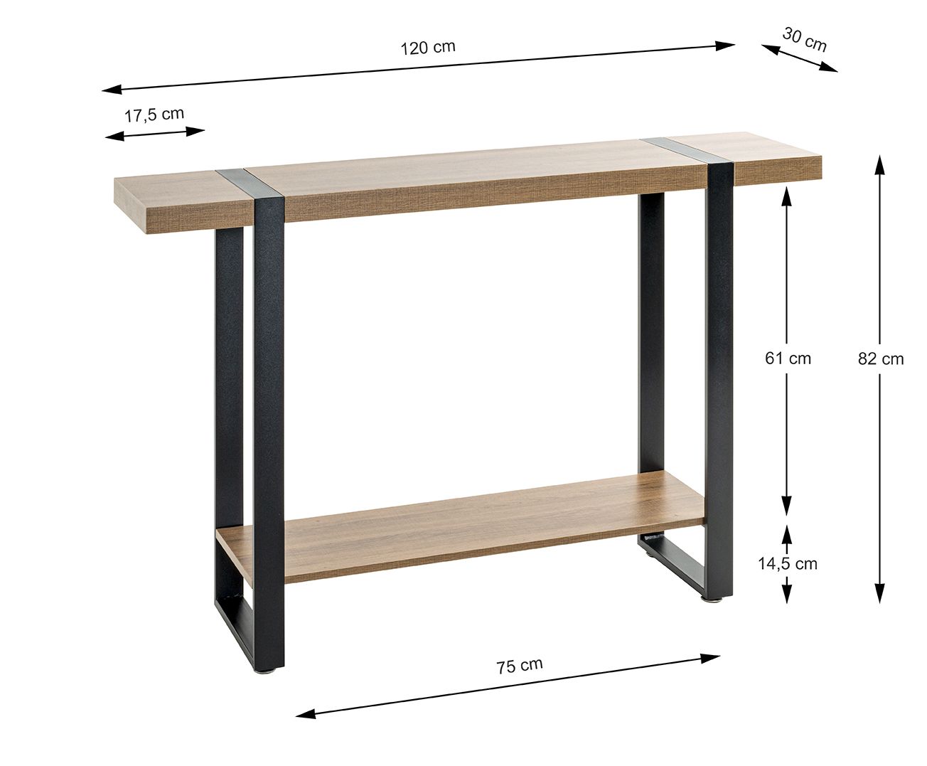 Haltafel| 2 Planken | Warm Eiken Dekor| Staal | Zwart | 120x82x30cm