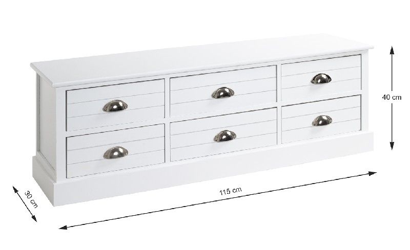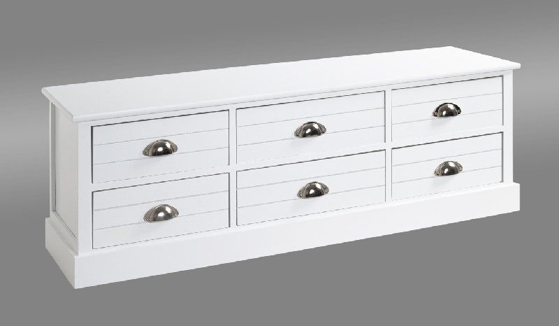 Bijzonder mooie commode van massief hout, gecombineerd met MDF-delen, in strak wit afgelakt. Met 6 laden voorzien van zilverkleurige handgrepen. Gemonteerd bij U thuisgeleverd.