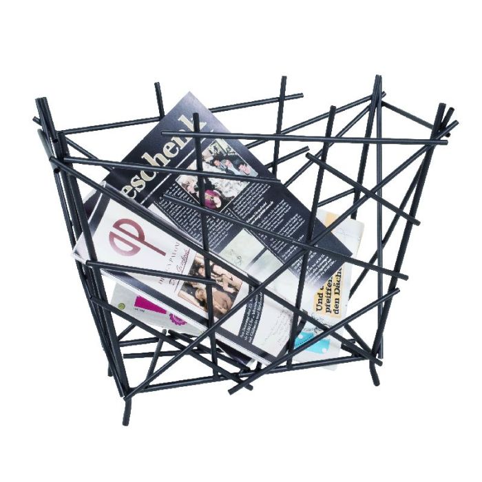 Origineel vormgeven lectuurmeubel, die lijkt op de nonchalant uitgestrooide stokjes uit het Micado-spel.