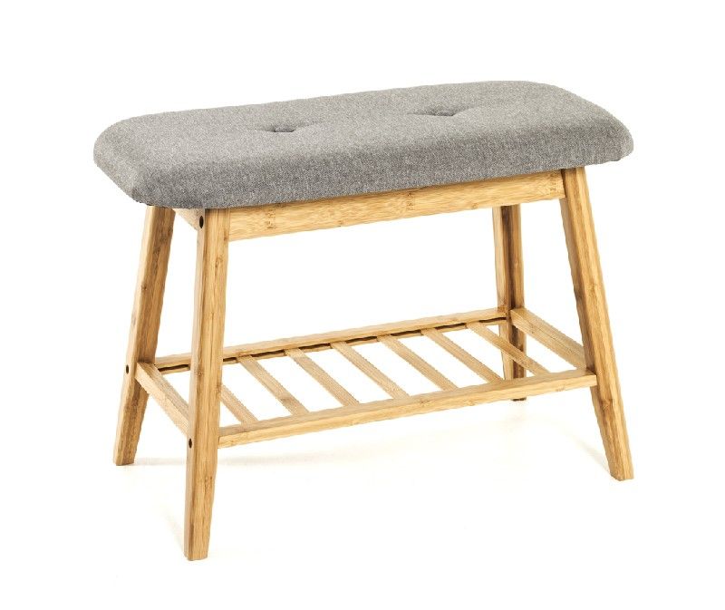 Schoenenbankje | Zitkussen | Bamboe hout | Naturel & Grijs | 60x30x44cm