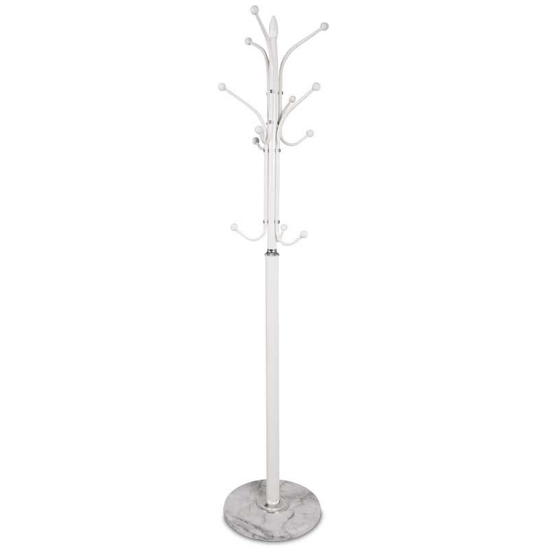 Deze elegant vormgegeven garderobe is vervaardigd van ijzersterk staal, in schitterend hoogglans Premium© witte lak. Met 12 garderobe-haken en op een ultrazware voet van gepolijst écht marmer.