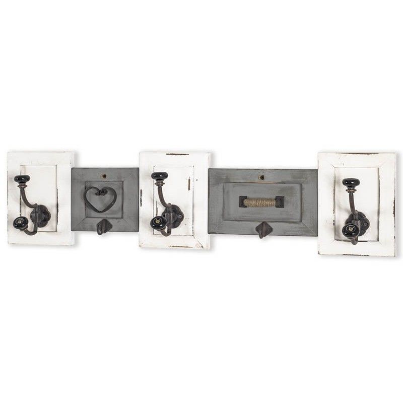 Wand Kapstok oud hout grijs wit