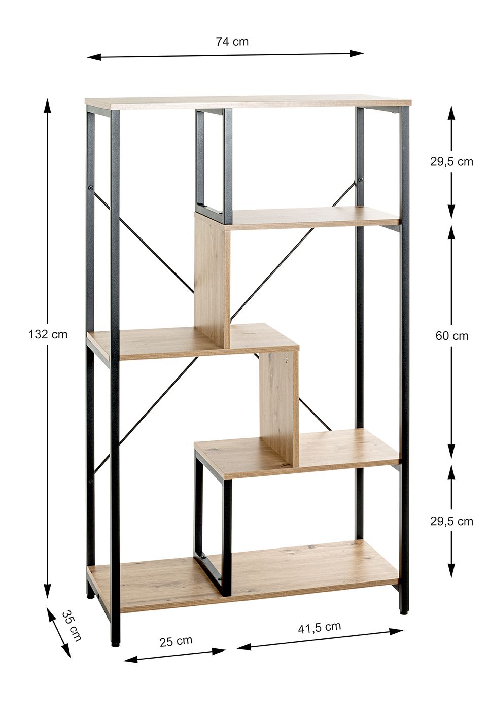 Wandkast | Boekenrek | 4 planken | Staal | Industrieel |132x74x35cm