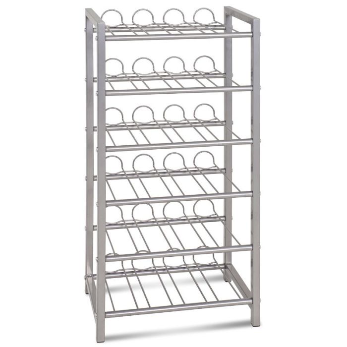 Bijzonder practisch wijnrek van sterk staalbuis in actuele alu-kleur gelakt. De 6 lagen zijn goed voor 42 flessen van 0,5liter.